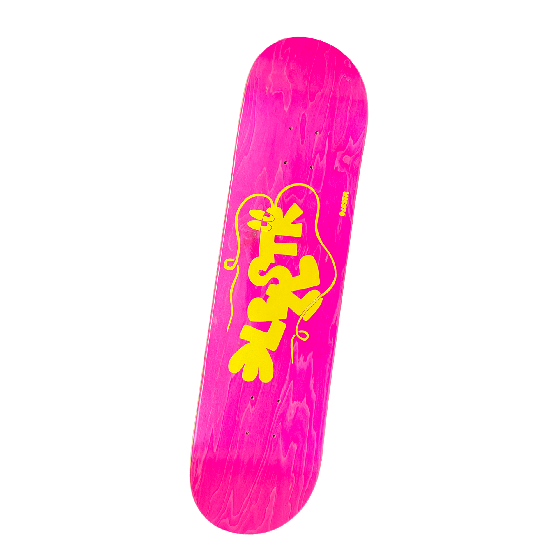 Tavola da skate in sette strati di acero, stampata su fondo rosa.